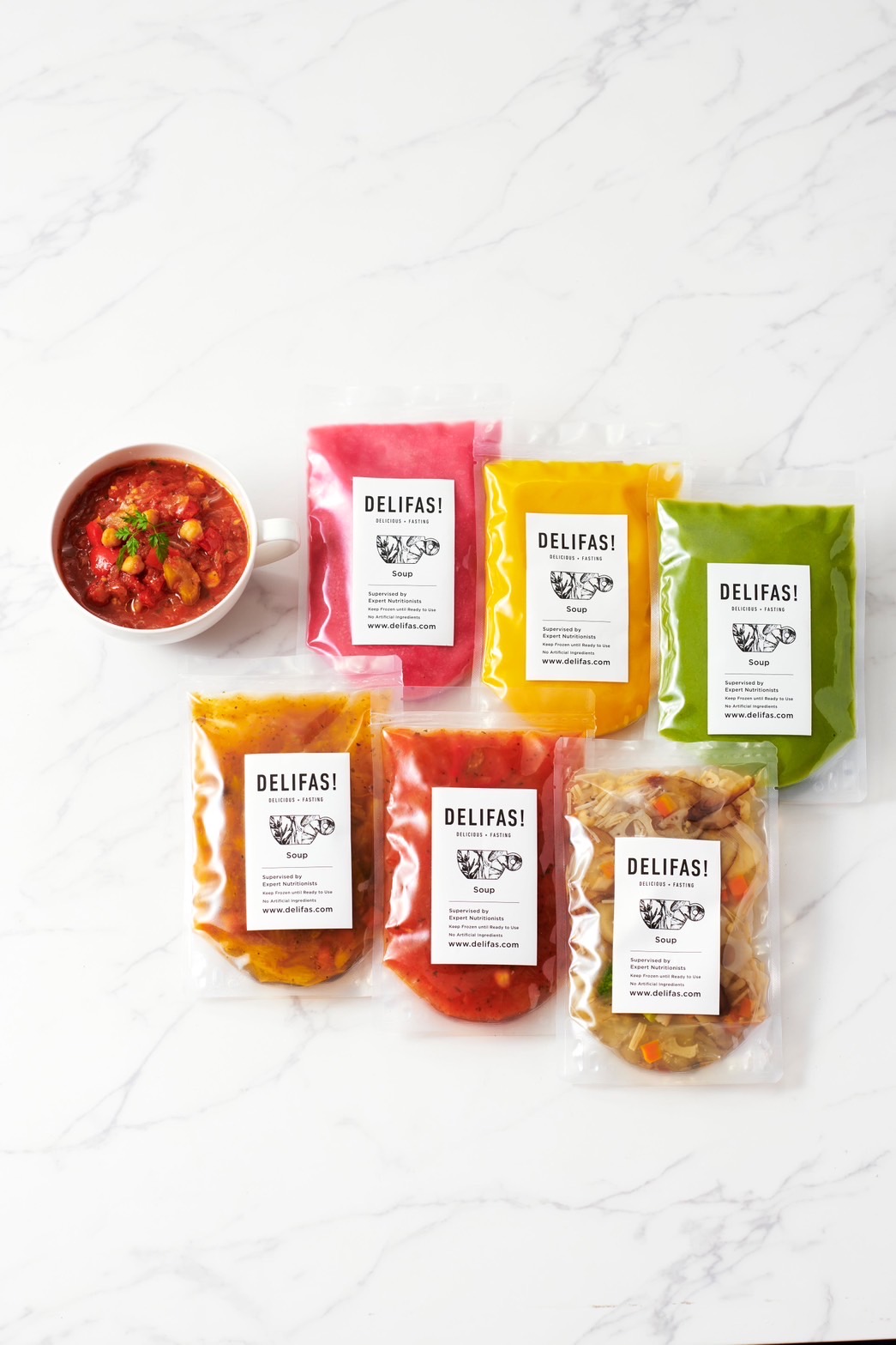 お土産には、体にやさしい「delifas」の食べるファスティングスープをご用意しております。